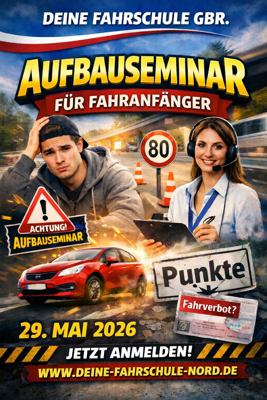 (ASF) Sicher zurück auf die Straße! Du hast während der Probezeit Punkte gesammelt oder ein Aufbauseminar von der Führerscheinstelle auferlegt bekommen? Kein Stress – wir sind für dich da! Bei Deine Fahrschule GbR. In unserem anerkannten Aufbauseminar für Fahranfänger lernst du, typische Gefahrensituationen besser einzuschätzen, dein Fahrverhalten zu verbessern und sicher am Straßenverkehr teilzunehmen. ✅ Das erwartet dich: Anerkanntes ASF-Seminar, Erfahrene & freundliche Fahrlehrer, Verständliche Inhalte ohne Druck, Praxisnah & professionell, Schnelle Anmeldung möglich 📞 Jetzt anmelden! Telefon: 0461-32623 Web: www.deine-fahrschule-nord.de Deine Fahrschule GbR. Wir bringen dich sicher ans Ziel.